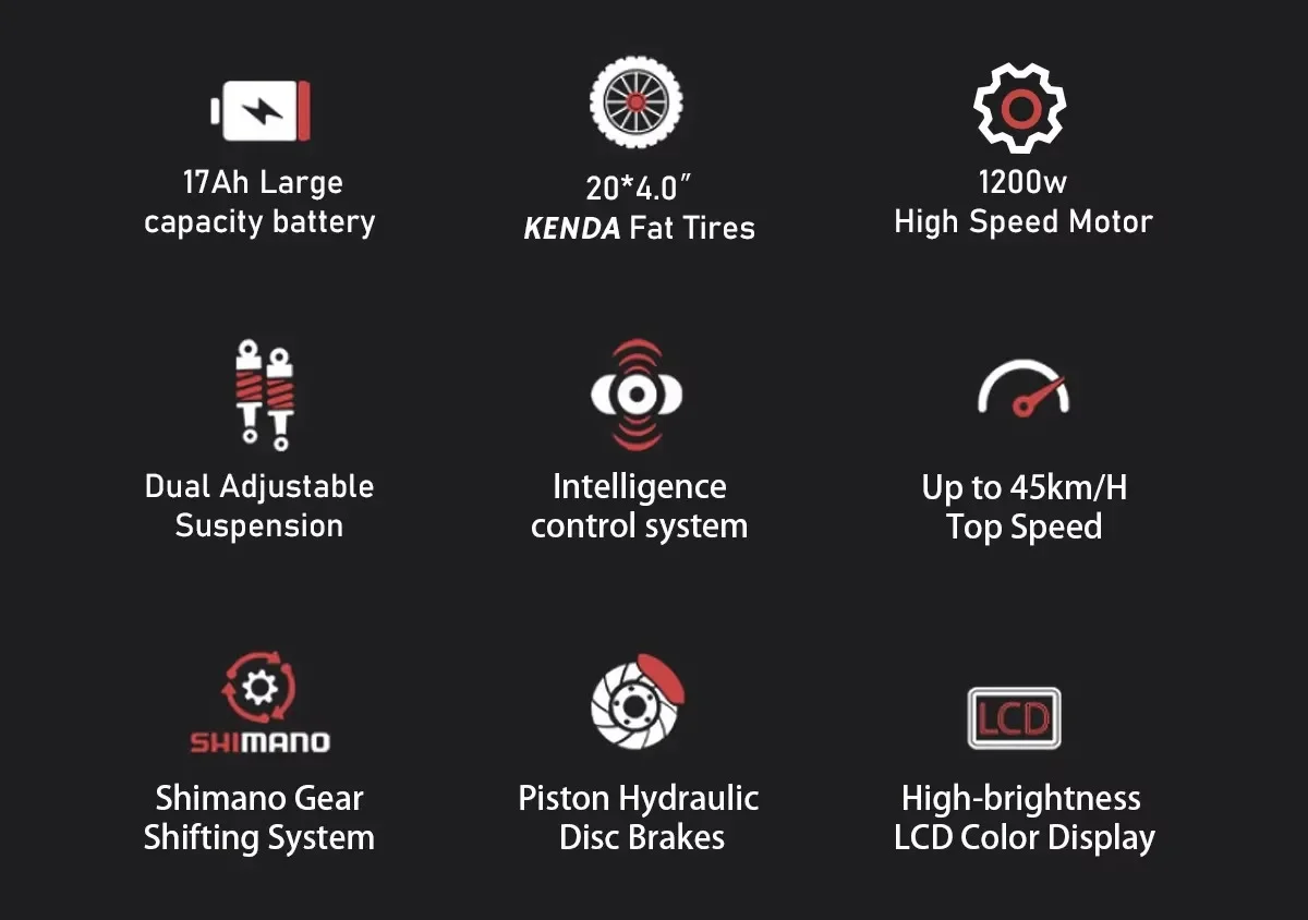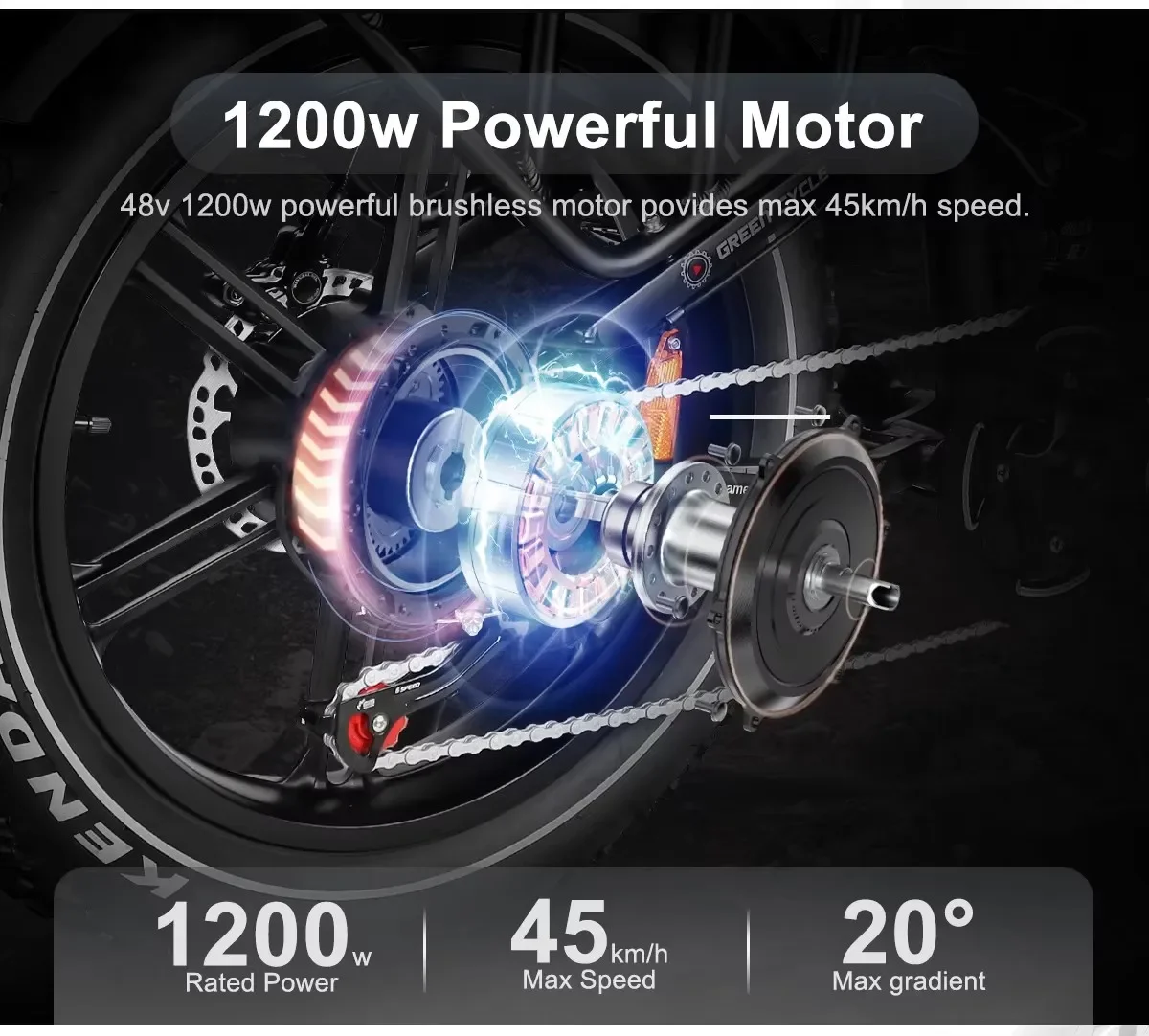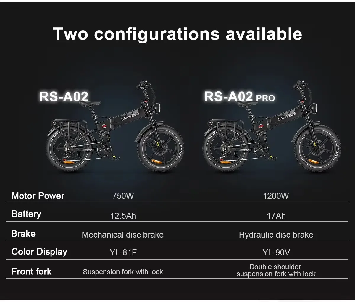 Ebike Hot RS-A02 Model 1200W48V Adult Mountain Electric Bicycle 14AH Battery 20-Inch 2 Tire Folding Electric Bicycle All-Terrain